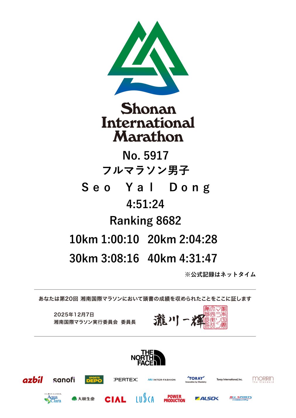 지금까지 해외 마라톤에 세 번 참가해 봤습니다. 모두 저마다의 색다른 재미가 있었지만 쇼난국제마라톤은 대회 운영과 서비스에서 제가 경험한 어떤 대회와도 비교불가네요.